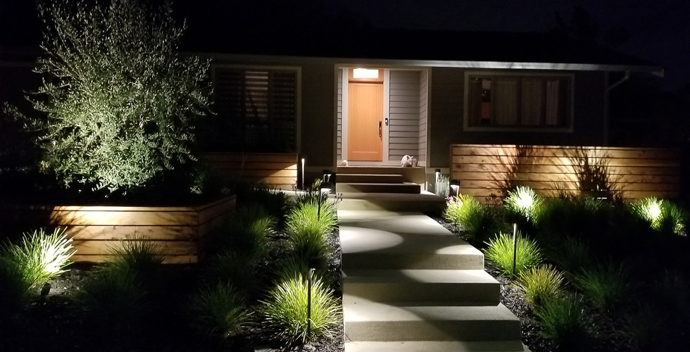 Design: My clients wanted a relatively low maintenance front yard. In addition, they wanted to add an additional pull-out parking spot so this had to be incorporated in the design. In inspecting the front yard, the front steps and walkway were in great shape. They had only been done a few years prior and the clean style of them would make them easy to play off of in the design. We also kept the redwood trees at the front of the property. The redwoods were healthy and matched 3 larger redwood trees in the backyard. They were also my clients favorite trees so thankfully they were able to stay.